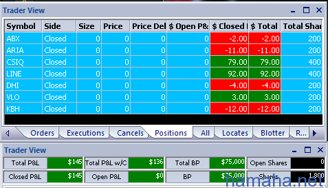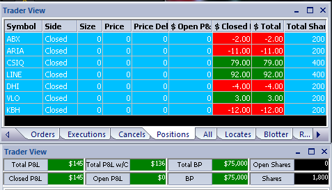 Начало тестов новой торговой системы на реале по 100 шерс. День, по сути сделали две акции: *CSIQ - пенни-стак, ходит мало, стоп небольшой, поэтому вход 200 шерс. *LINE - Стак резвый инплей) Продажи есть, потенциал есть. Первый раз решил взять до пробития уровня, но ошибся - продавец решил еще чутка набраться и посносить стопы умников, типо меня)) Второй шорт уже более красиво смотрится - стак пробил-таки уровень и закрепился под ним, что дало хороший вход. Торговая система позволила высидеть почти полтора поинта. P.S. Кстати, в данной ТС не нашлось применение ленты со стаканом, торговля чисто по графику с применением некоторых сканеров, фильтров и индикаторов :)