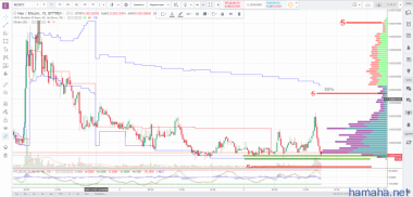 EOSUSD , P/L = -8%. Шорт на фоне окончания 2-й волны коррекции + окончания раздачи токенов. На пробое уровня был влит большой объем, не успел перевернуться, а фиксация убытка грозила сливу 30% депо, что было неприемлемо. Дождался отката и закрыл сделку с приемлемыми потерями.