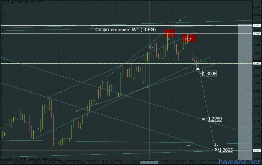 Шорт по евро$ от 1,3057 sl:1.3097 tp: 1.2605 Возможные цели обозначены "Х" Для более безопасного входа в шорт - выход из флажка 1,3008. На DX: от 79.800 возможна коррекция до уровня подержки.