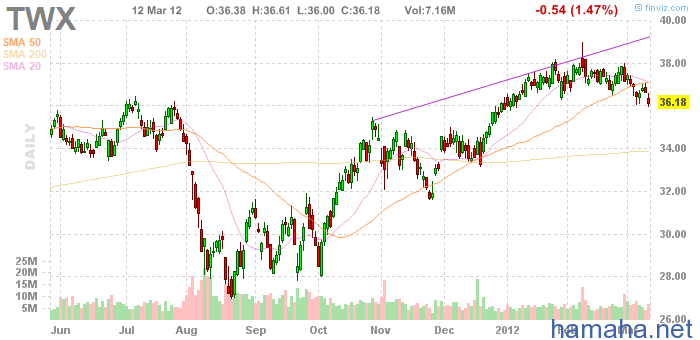 Рисерч на 13.03. :1) *PMTC возле хая 28 дол., смотреть на пробой/отбой, 2) *WYN - брейкаут ,3)*ACOM 22 дол. сильный уровень, на 22.50 вчера была поддержка, 4) *TWX селл после 36 .