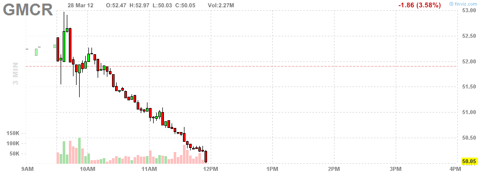 *GMCR очень чисто падает, давно не было откатов. 50 дол. крутой уровень на дневке.