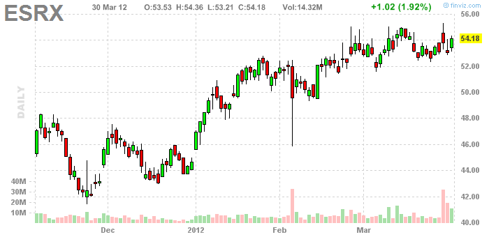 *ESRX активная на примаркете. Вышла новость, что она поглощает конкурента Medco Health Solutions *MHS и путь к монополии открыть. Сделка одобрена. Теперь Express Scripts будет лидером в своей фармацевтической отрасли.